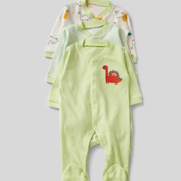 Lime Green Dinosaur Printed Set Rompers